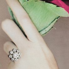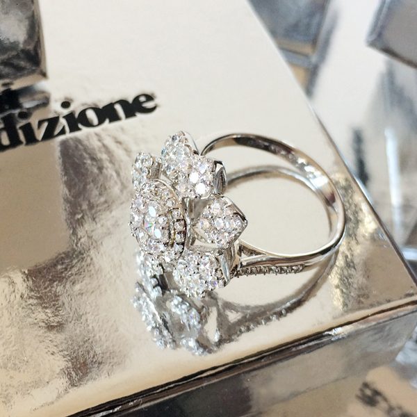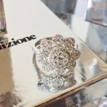 Zarter Ring in Form einer Sonnenblume. Besetzt mit unzähligen