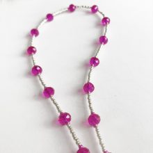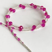 Brillenkette mit Perlen in silber und pink, am Ende gibt es kleine Silikon-Schlaufen, um die Kette an der Brille zu befestigen, Länge mit Schlaufen ca. 70 cm.
