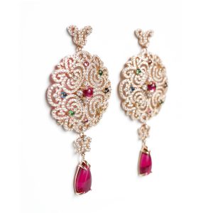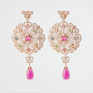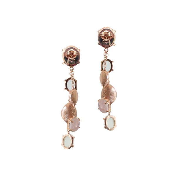 Feine Ohrhänger besetzt mit rosafarbenen Cabochon Steinen.