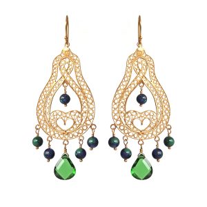 Eine cremefarbene Perle hängt unterhalb des Steins. Der Ohrring