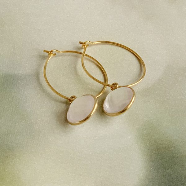 Goldene Creole mit Anhänger aus Rosenquarz