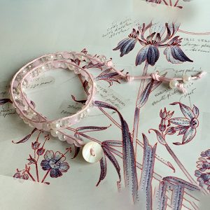 verziert mit Perlen aus Jade. Außen und in der Mitte hängen