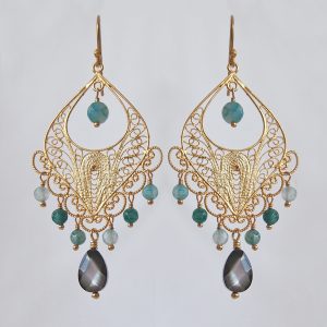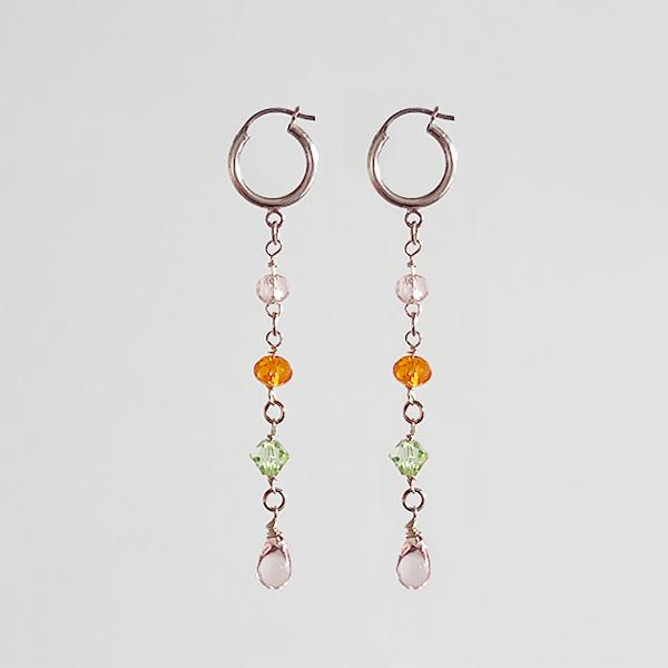 Mini-Creole silber mit bunten facetierten Glasperlen