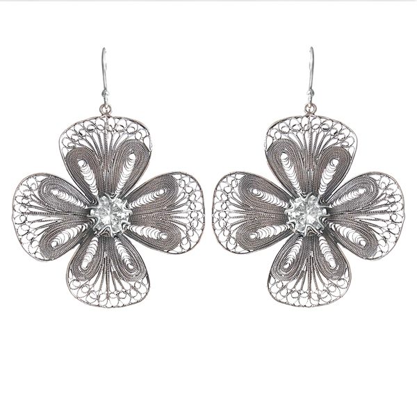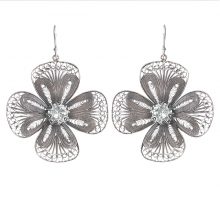 Filigraner in Wirbeln gestalteter Ohrring, silber oxidiert,