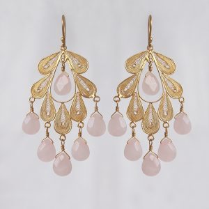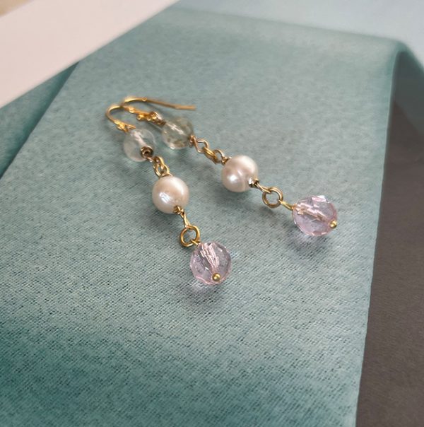 Zarter Ohrhänger mit kleinen facetierten Glasperlen und einer Süsswasserperle.