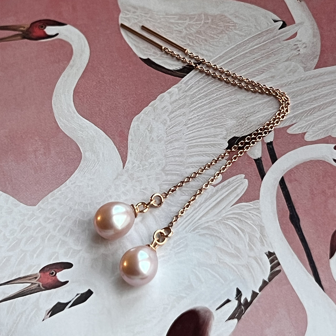 Ohrhänger mit Kette in roségold und Perle in Tropfenform