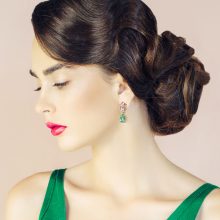 Leuchtende Ohrstecker mit einer rosa Blume,