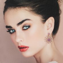 zum Stecken, rosévergoldet. Der zarte milchige Stein