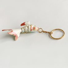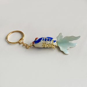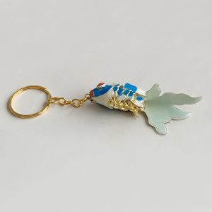 Schlüsselanhänger mit Fisch emailliert, Fischgröße ca. 6,5 cm, Kette 2,5 cm, Ringdurchmesser ca. 2,5 cm