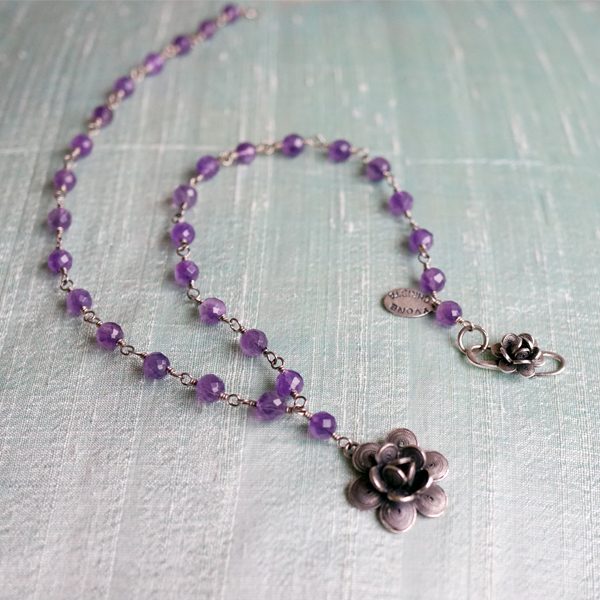 Wunderschöne Kette mit Amethysten und einer Rose